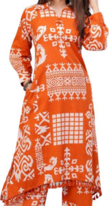 Add a vibrant touch to your ethnic wardrobe with this stunning orange kurta set, designed to combine comfort with effortless style. Featuring bold ethnic prints and a flattering silhouette, this outfit is perfect for both everyday wear and casual outings.